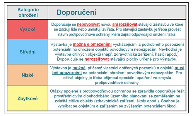 Obrázek 1 a 2: Mapa povodňového ohrožení a vysvětlivky