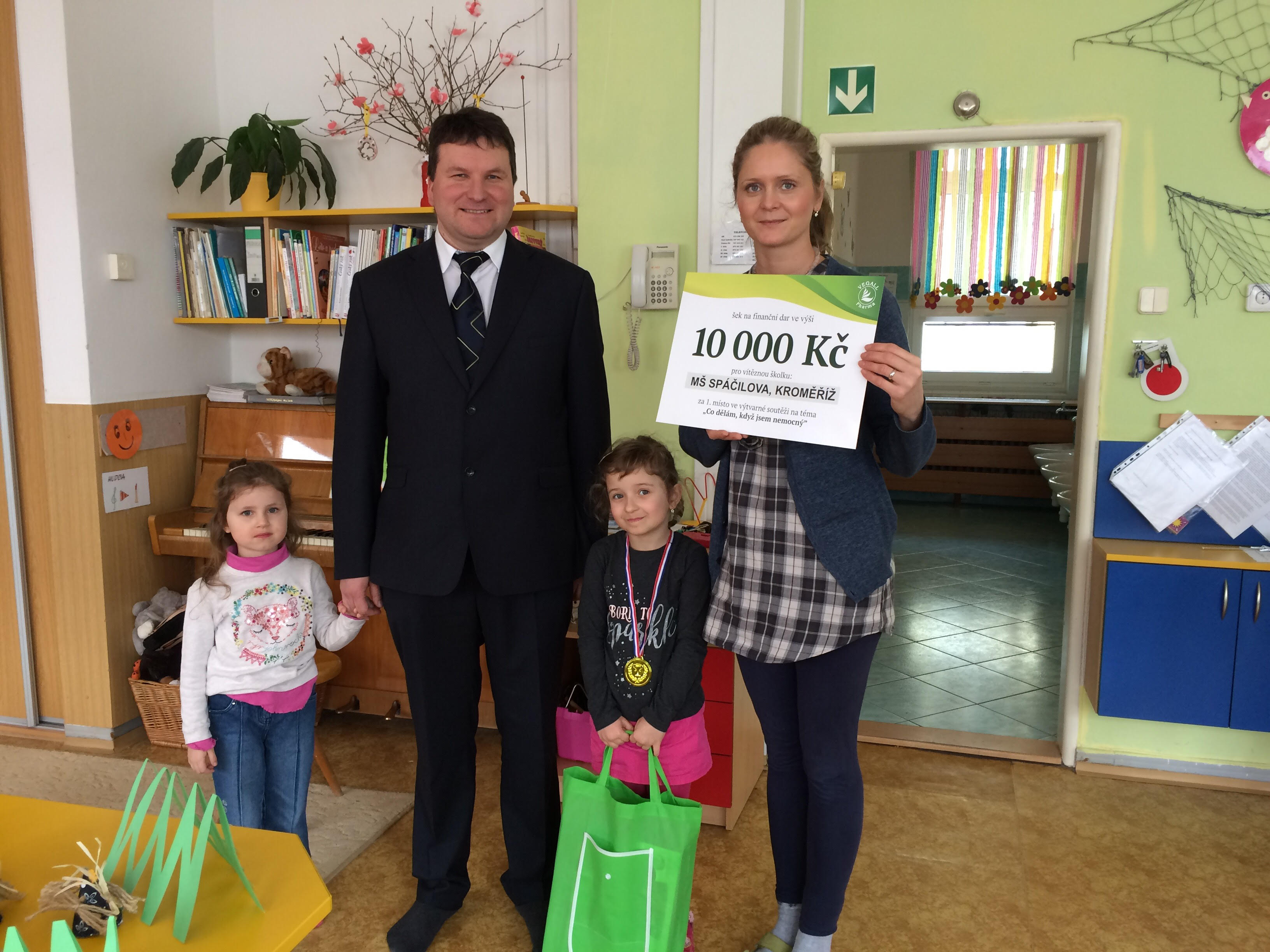 Mateřská škola Spáčilova z Kroměříže zvítězila ve výtvarné soutěži a začátkem týdne převzala výhru ve výši 10 tisíc korun. Výtvarnou soutěž na téma „Co dělám, když jsem nemocný“ pořádala česká farmaceutická společnost Vegall Pharma. Akce se zúčastnily tři desítky školek z celé České republiky. Peníze chce vítězná mateřská škola využít především na nákup didaktických pomůcek.